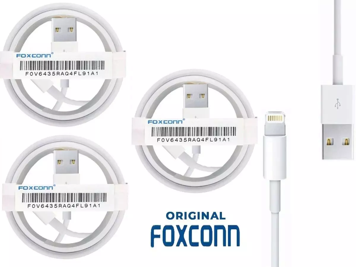 O Cabo USB 2.0 Original da Foxconn oferece carregamento rápido e sincronização estável para iPhone ou iPod com conector Lightning.